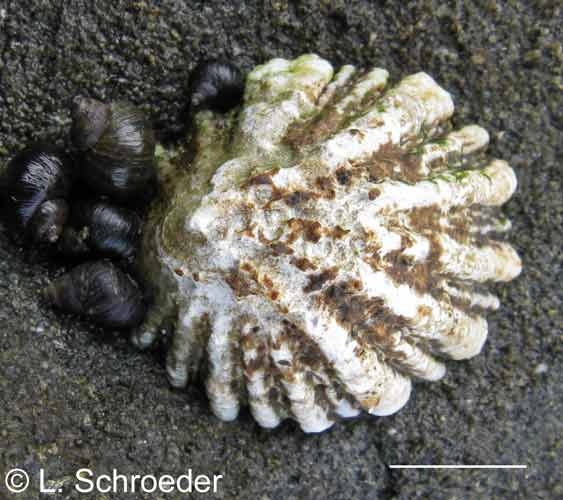 higher as it ages. These shells are rarely obscured by algae or other overgrowth. As with many limpets,