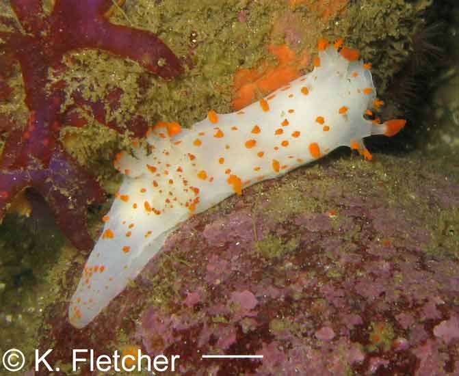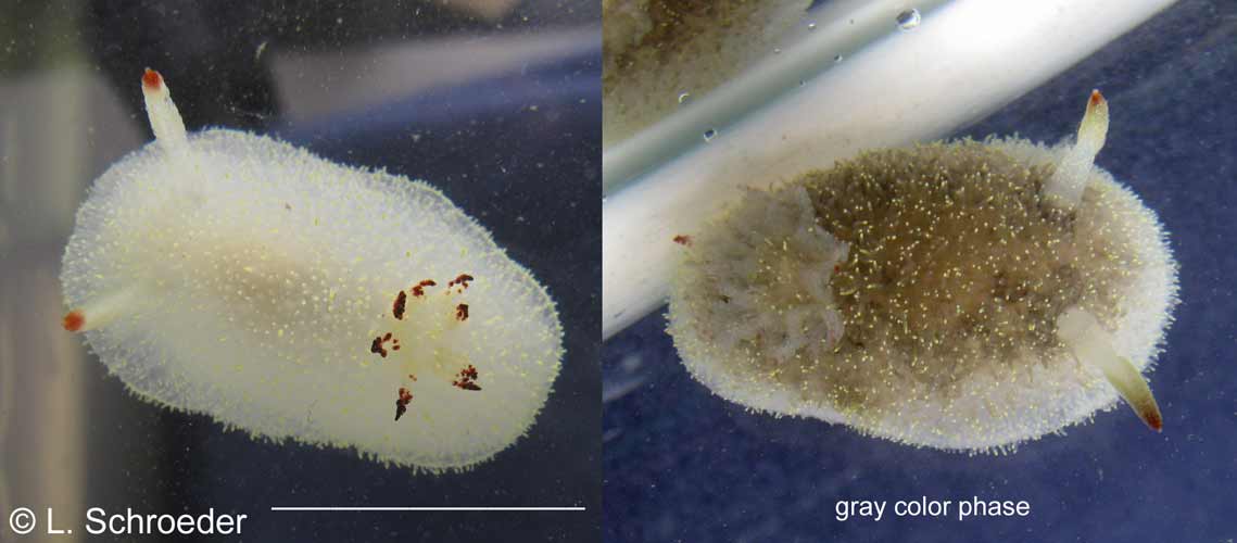 Diaphorodoris lirulatocauda Millen, 1985Porcupine Dorid or Ridge-tailed Doridintertidal to subtidal size to 12mmnorthern Mexico to southern AlaskaThis